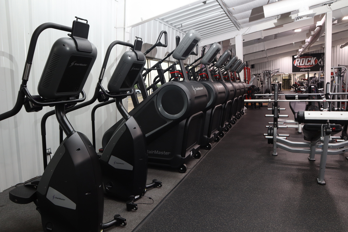 Boost your endurance with Rock Core's variety of cardio equipment, including treadmills, stair climbers, and ellipticals